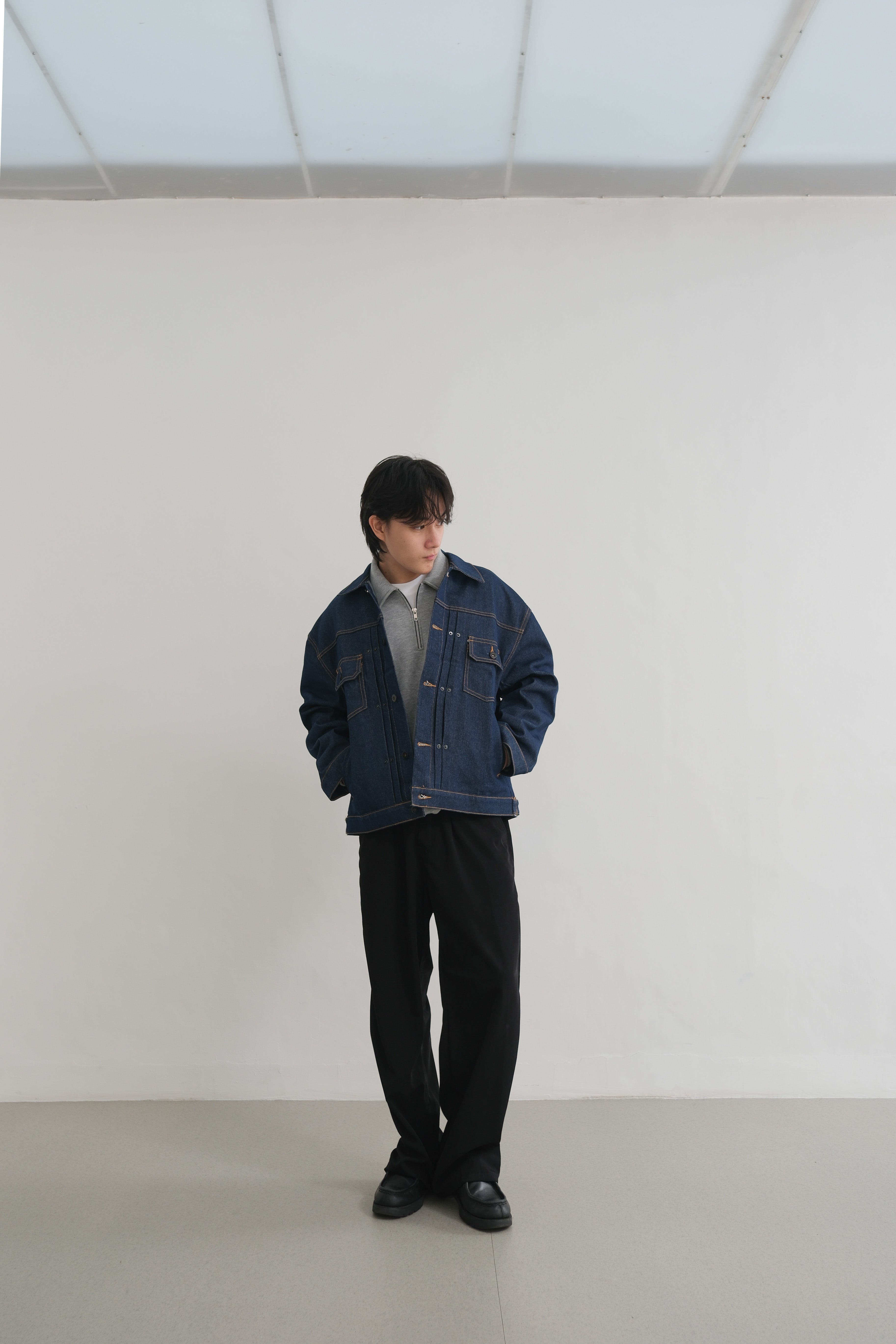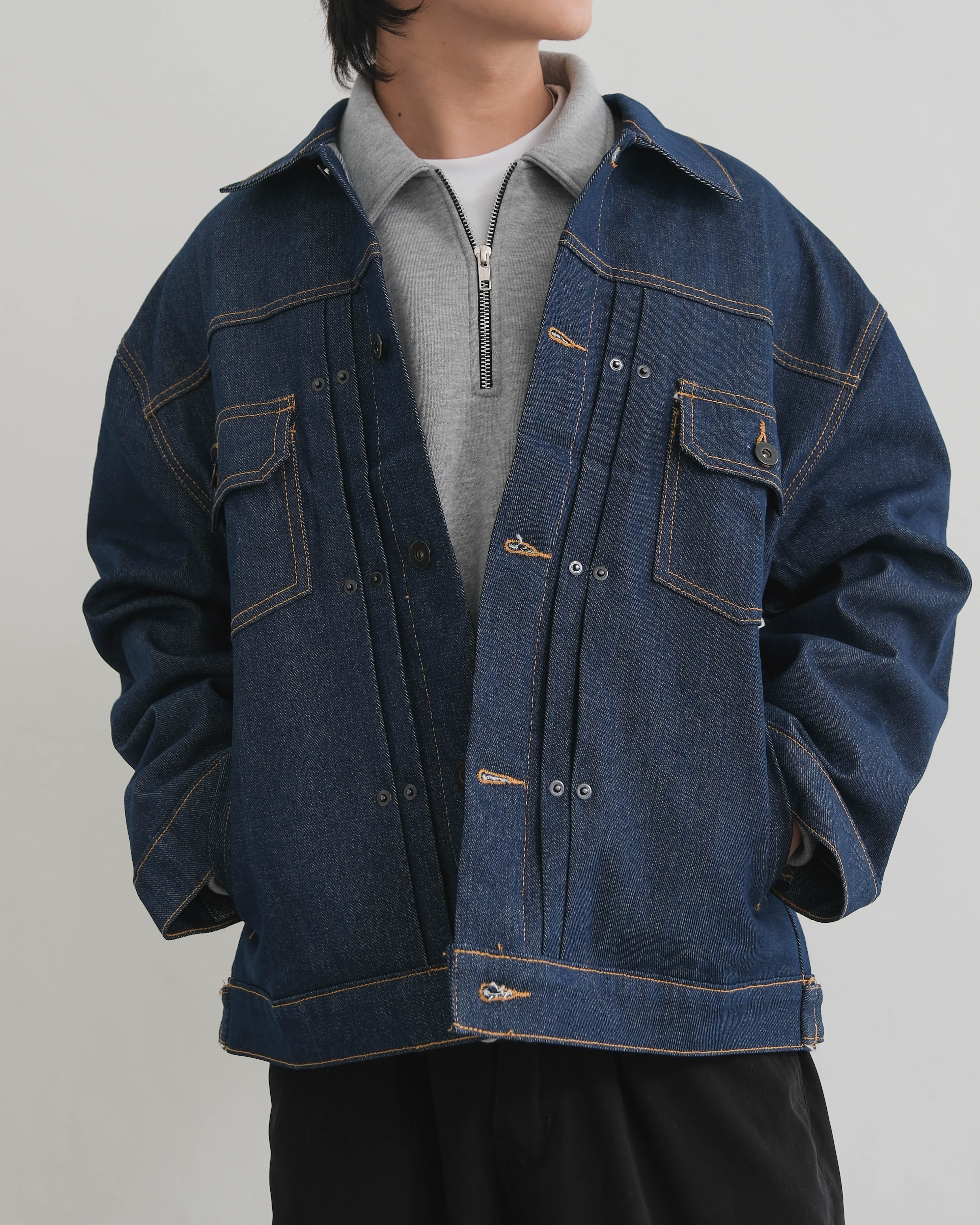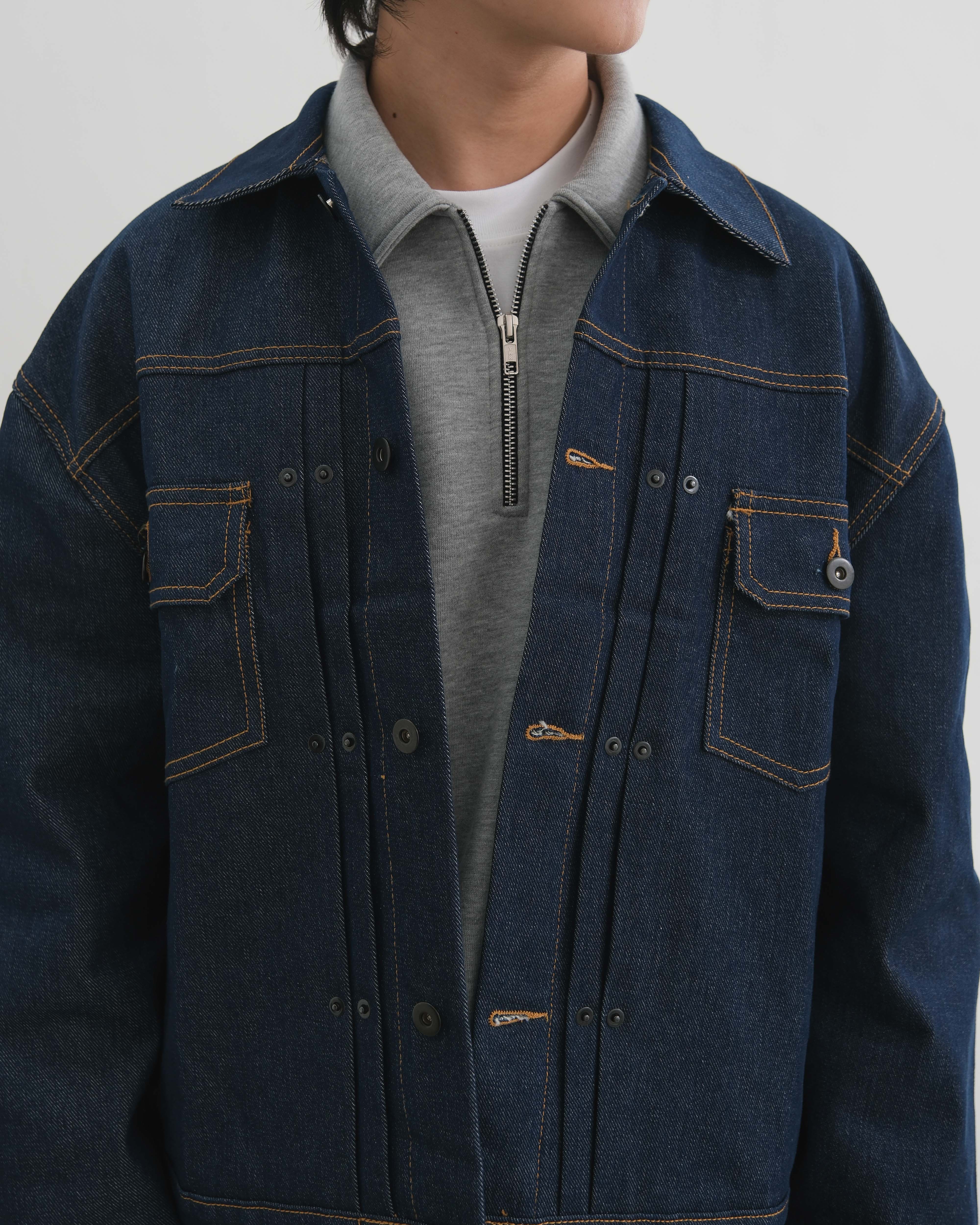 A modern take on the classic Type 2 silhouette, crafted from heavyweight 14oz denim in a rich deep indigo tone. Designed with structure and durability in mind, this jacket features traditional rivet reinforcements, twin front pockets, and an adjustable waist. The fabric will soften and fade uniquely over time, making each piece truly your own.