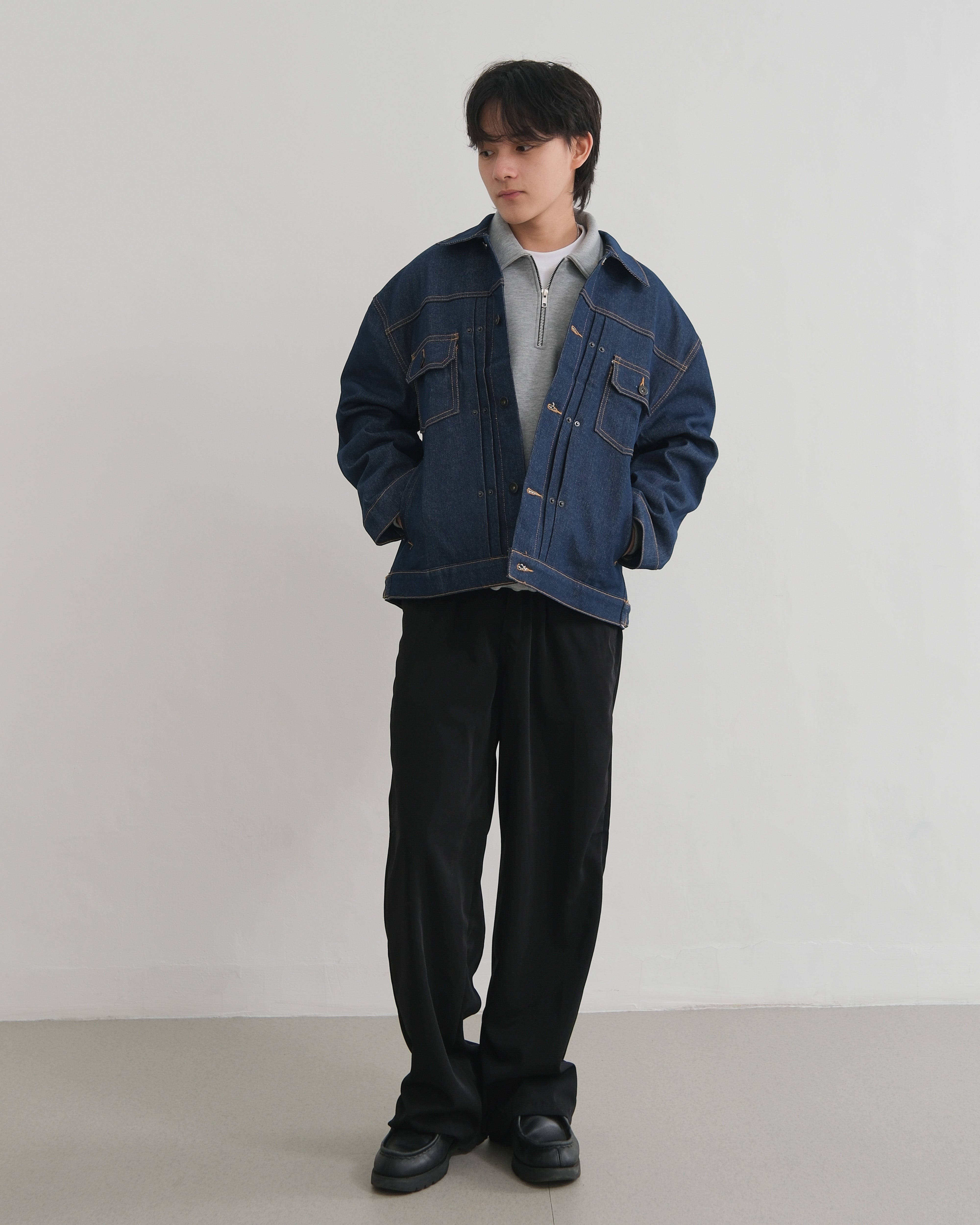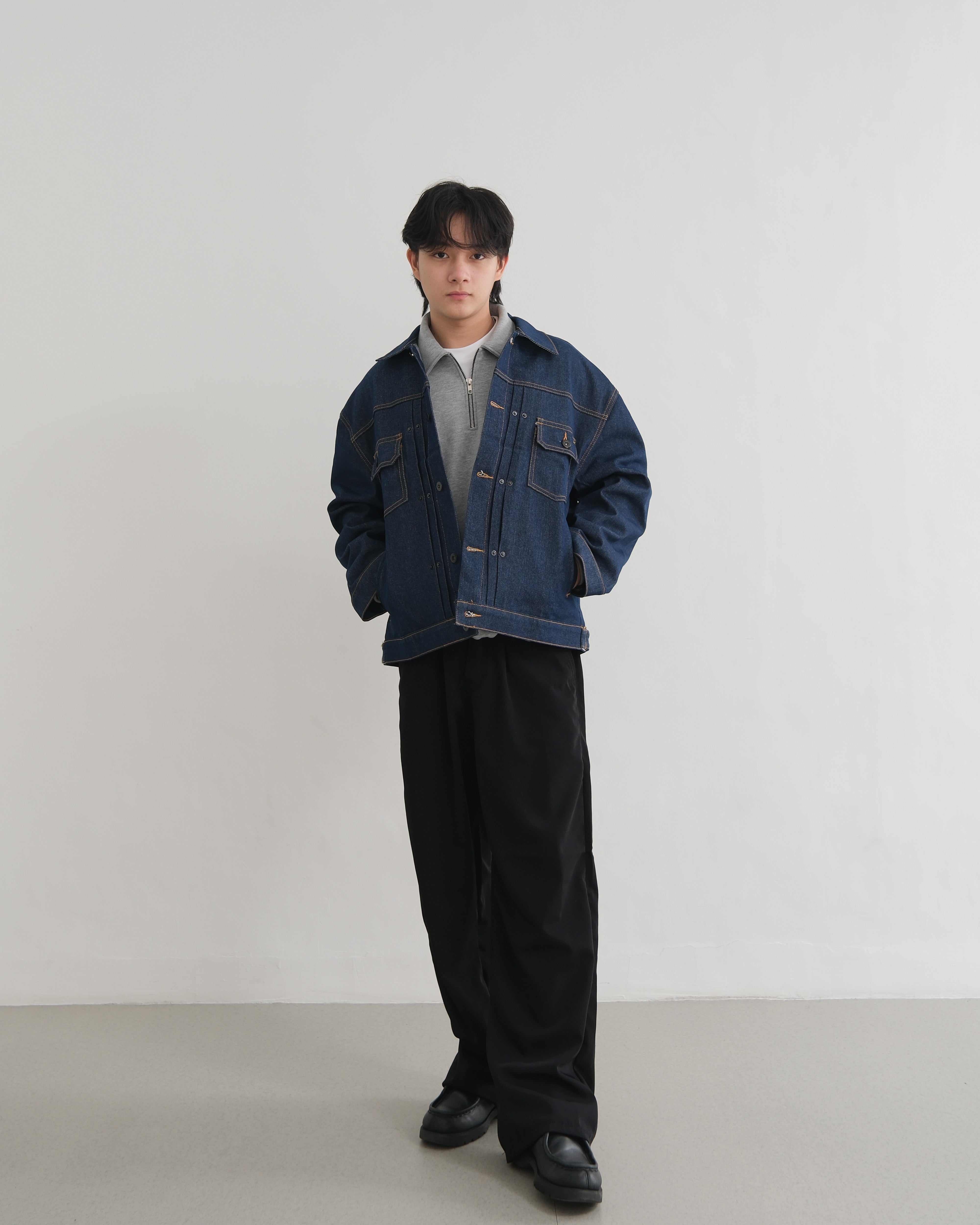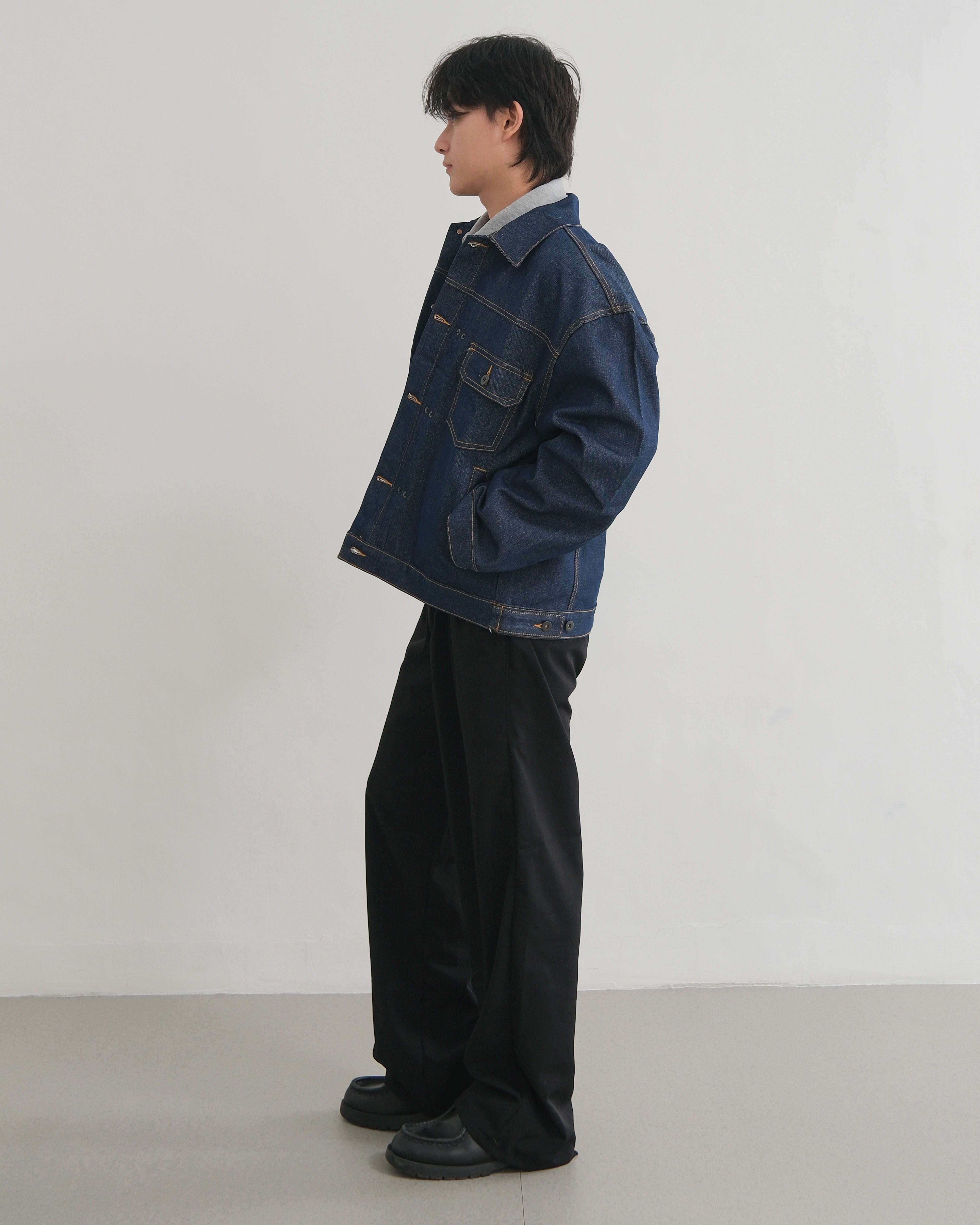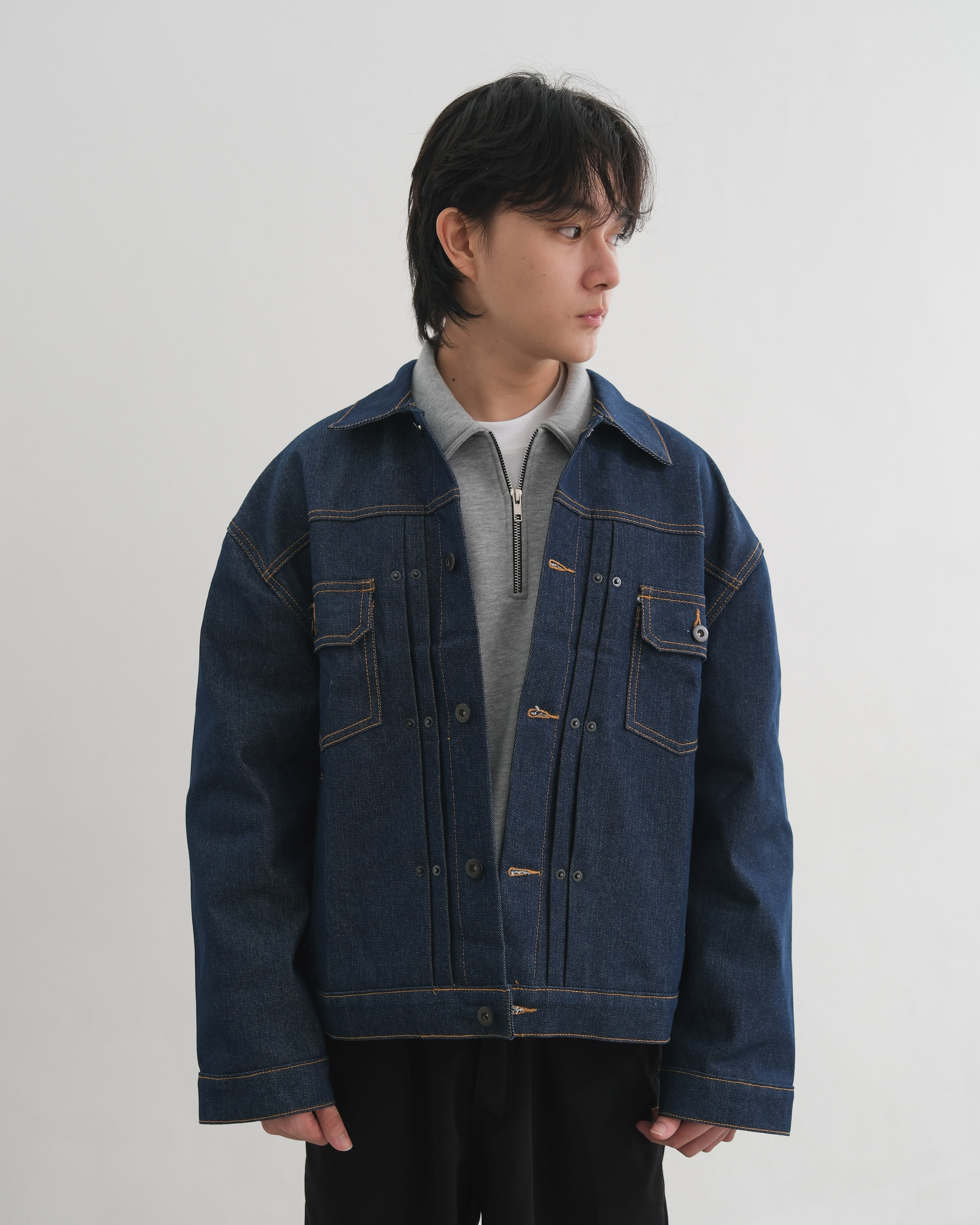 A modern take on the classic Type 2 silhouette, crafted from heavyweight 14oz denim in a rich deep indigo tone. Designed with structure and durability in mind, this jacket features traditional rivet reinforcements, twin front pockets, and an adjustable waist. The fabric will soften and fade uniquely over time, making each piece truly your own.