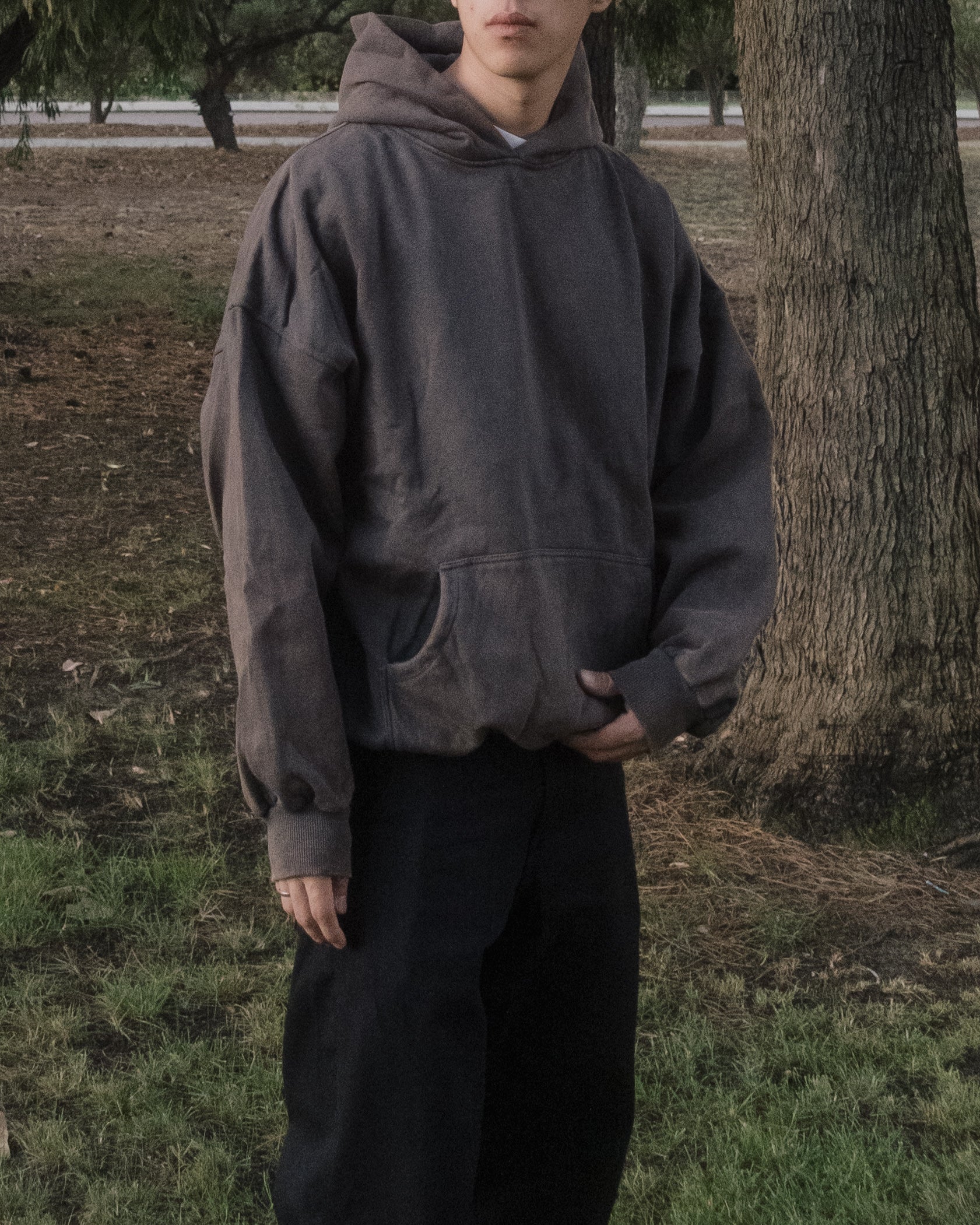 This garment is hued with a fade out wash, meaning that each piece has a unique characteristic and slight variation in exact color.