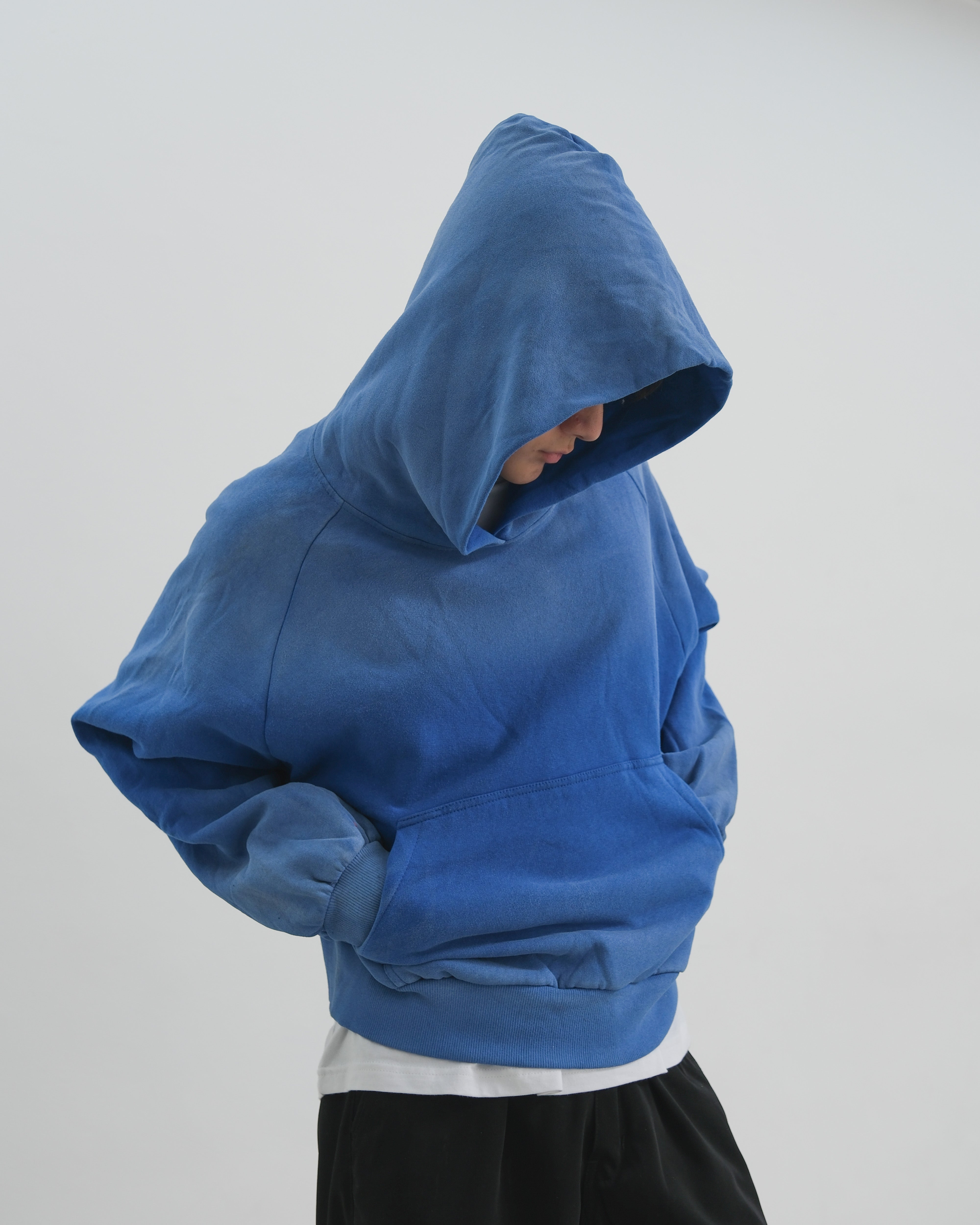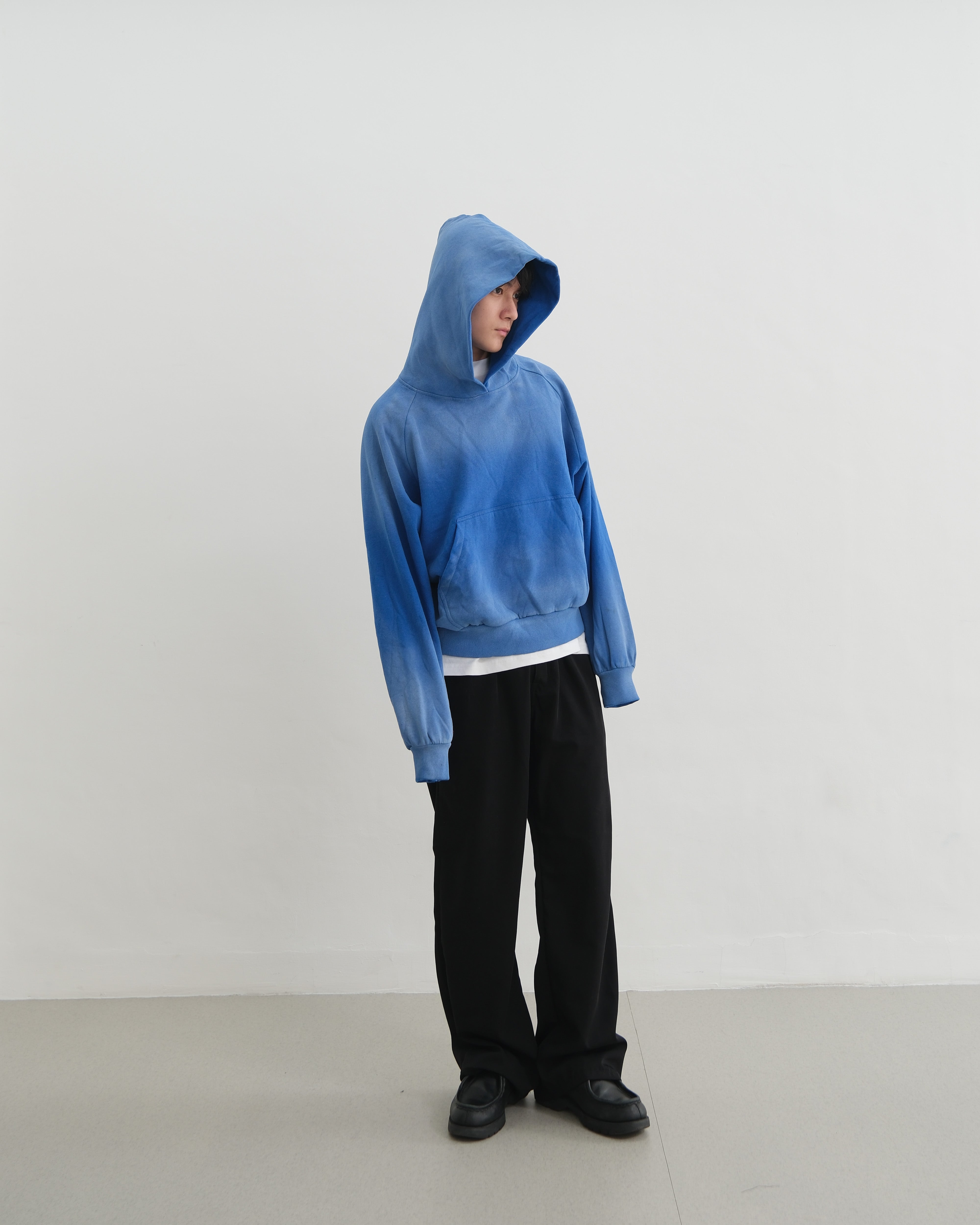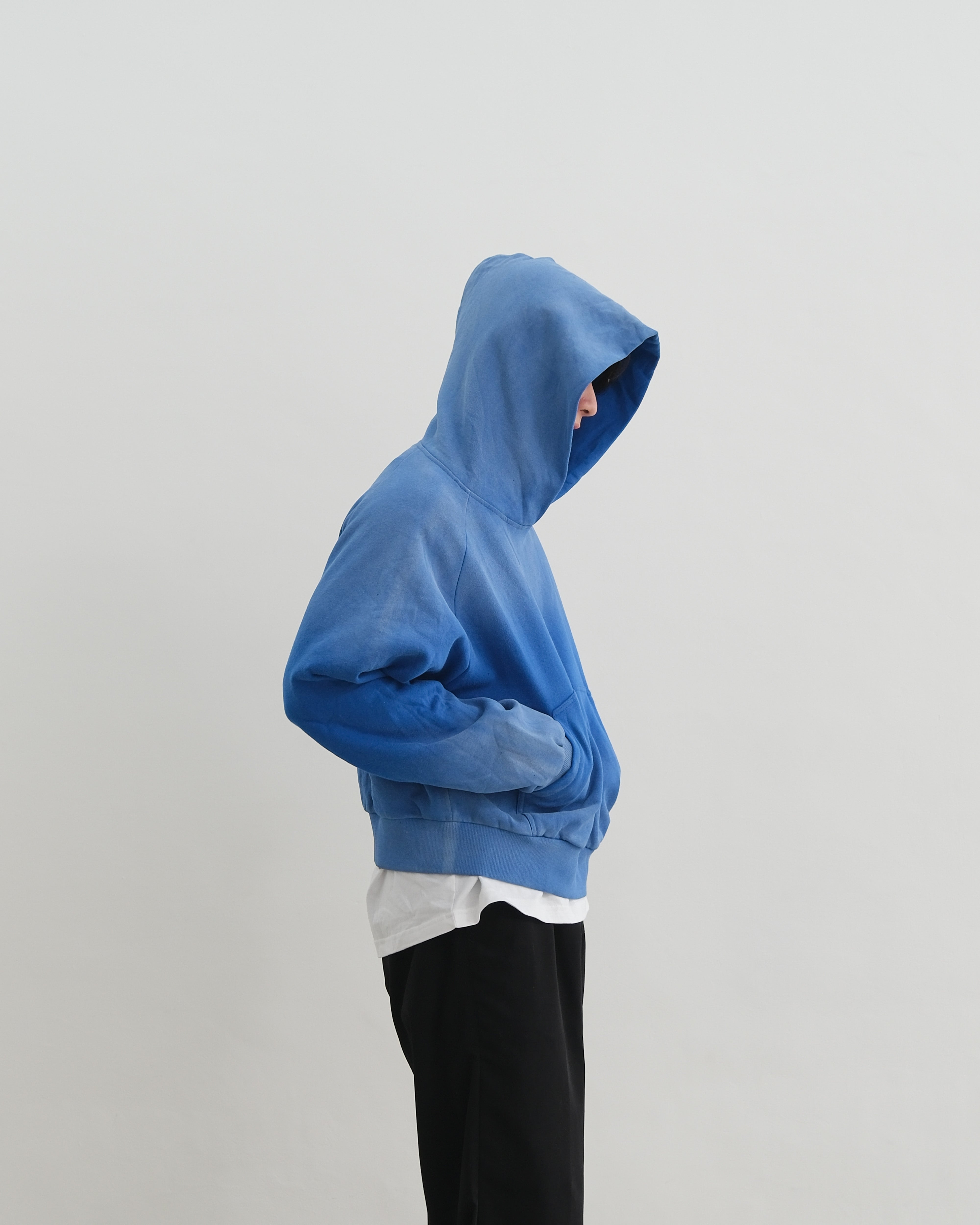 This garment is hued with a fade out wash, meaning that each piece has a unique characteristic and slight variation in exact color.