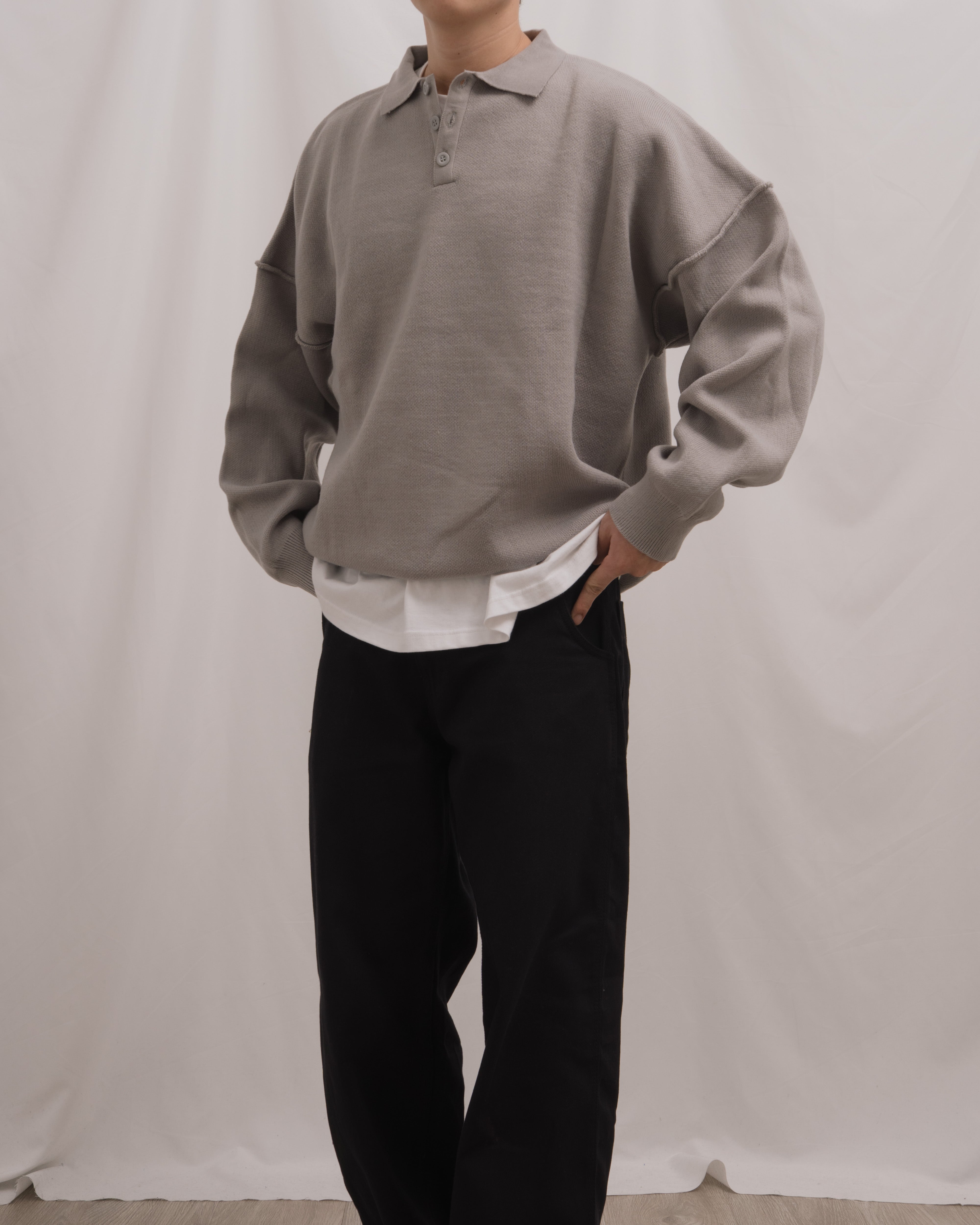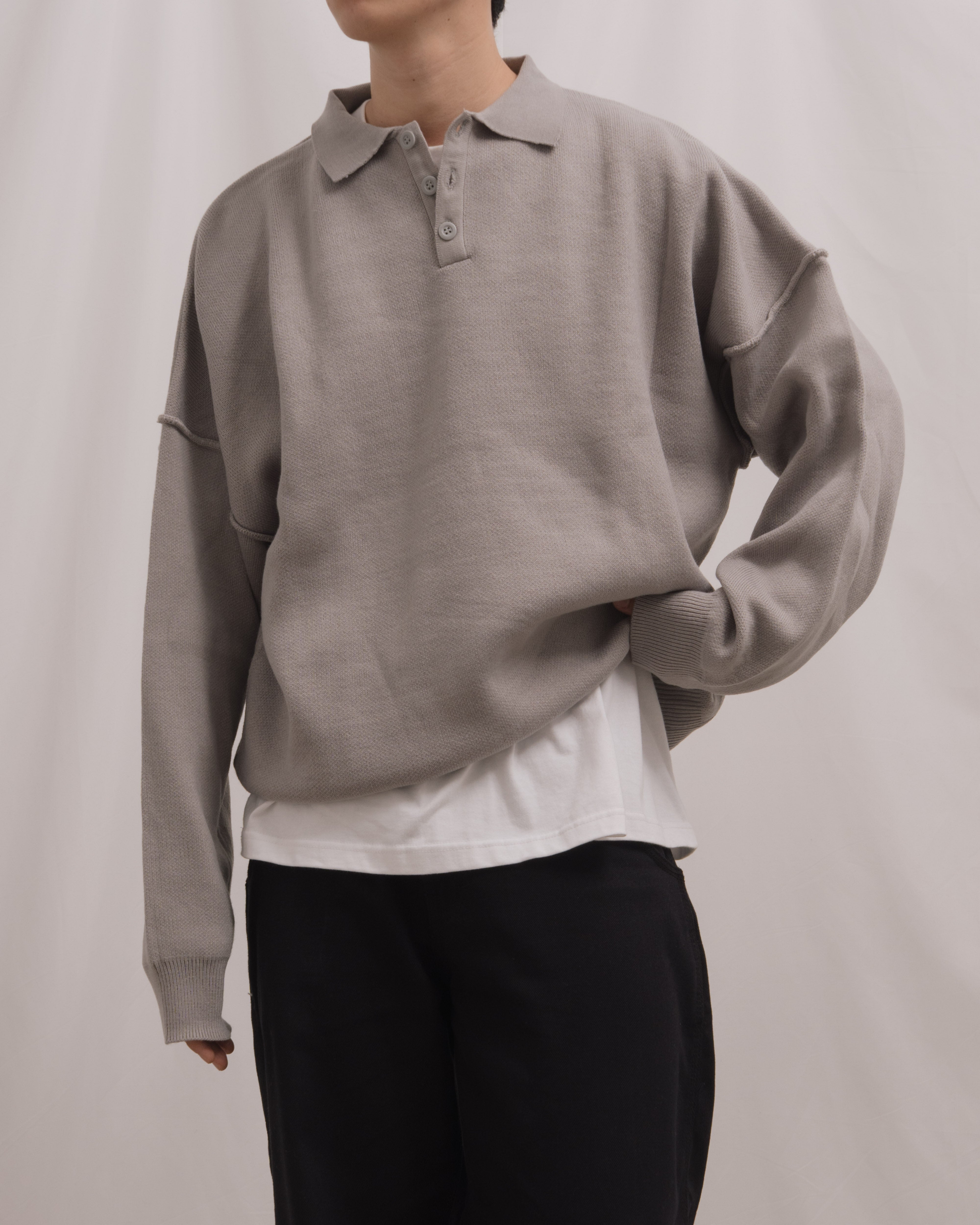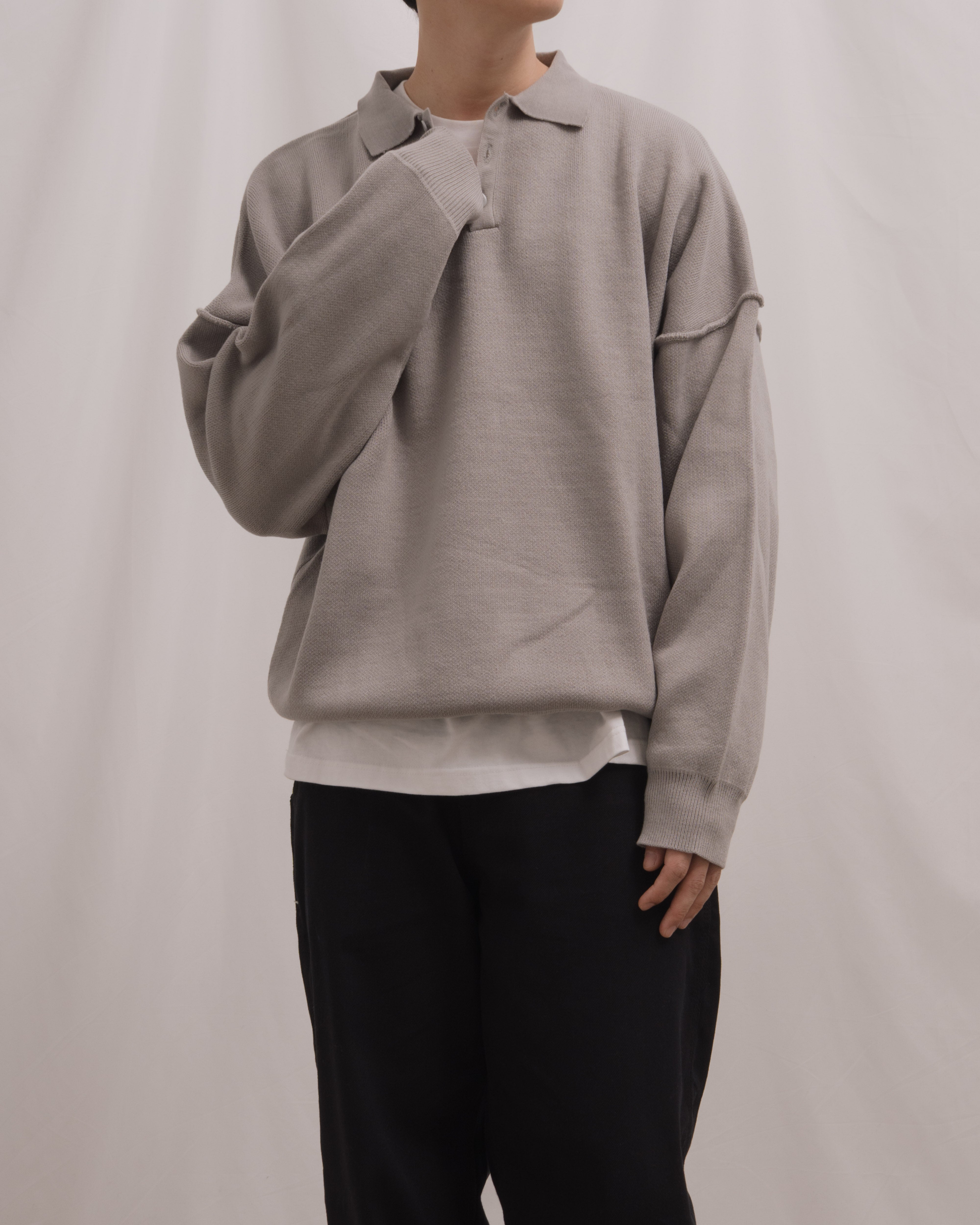 Knit Long Sleeve Polo - Misty