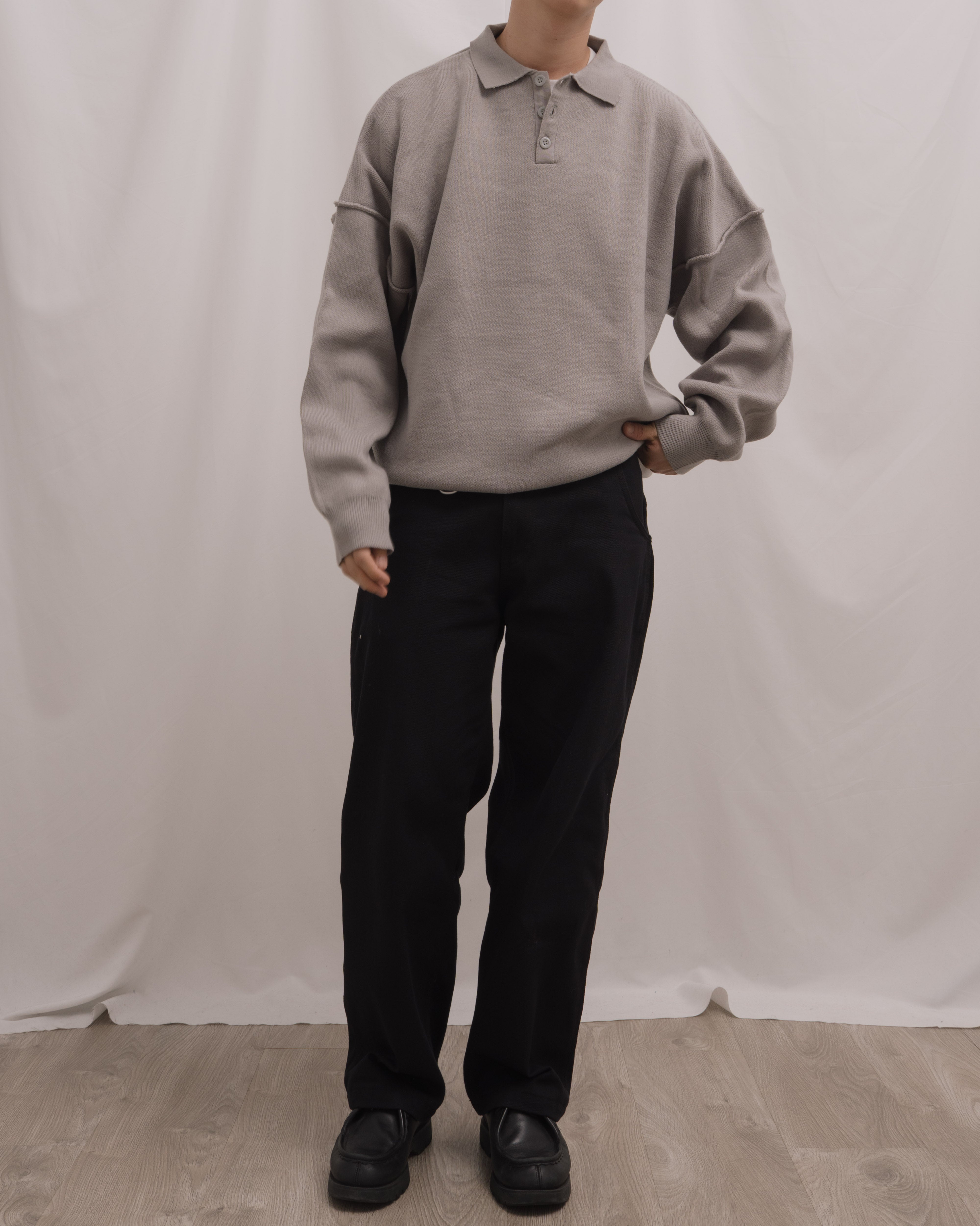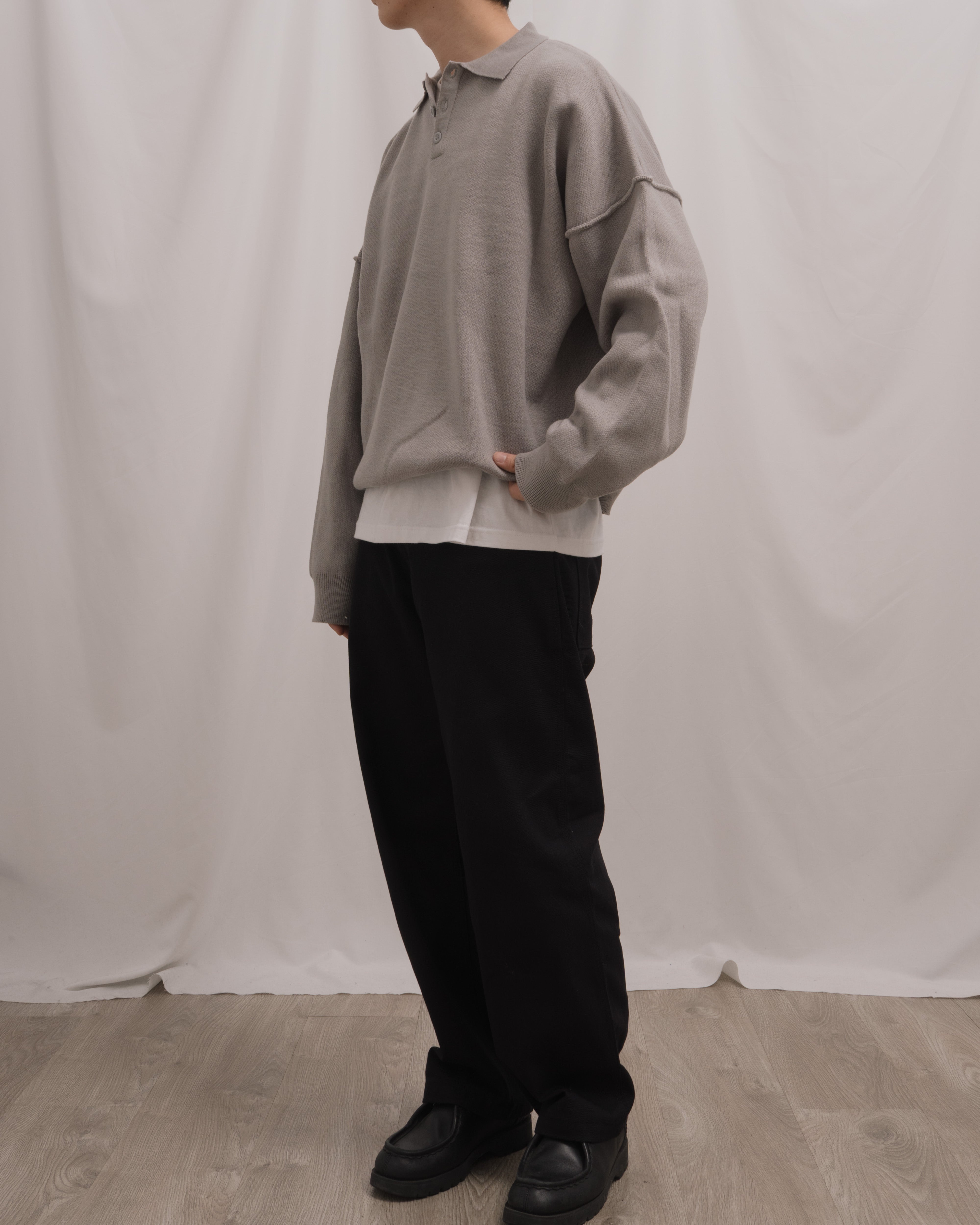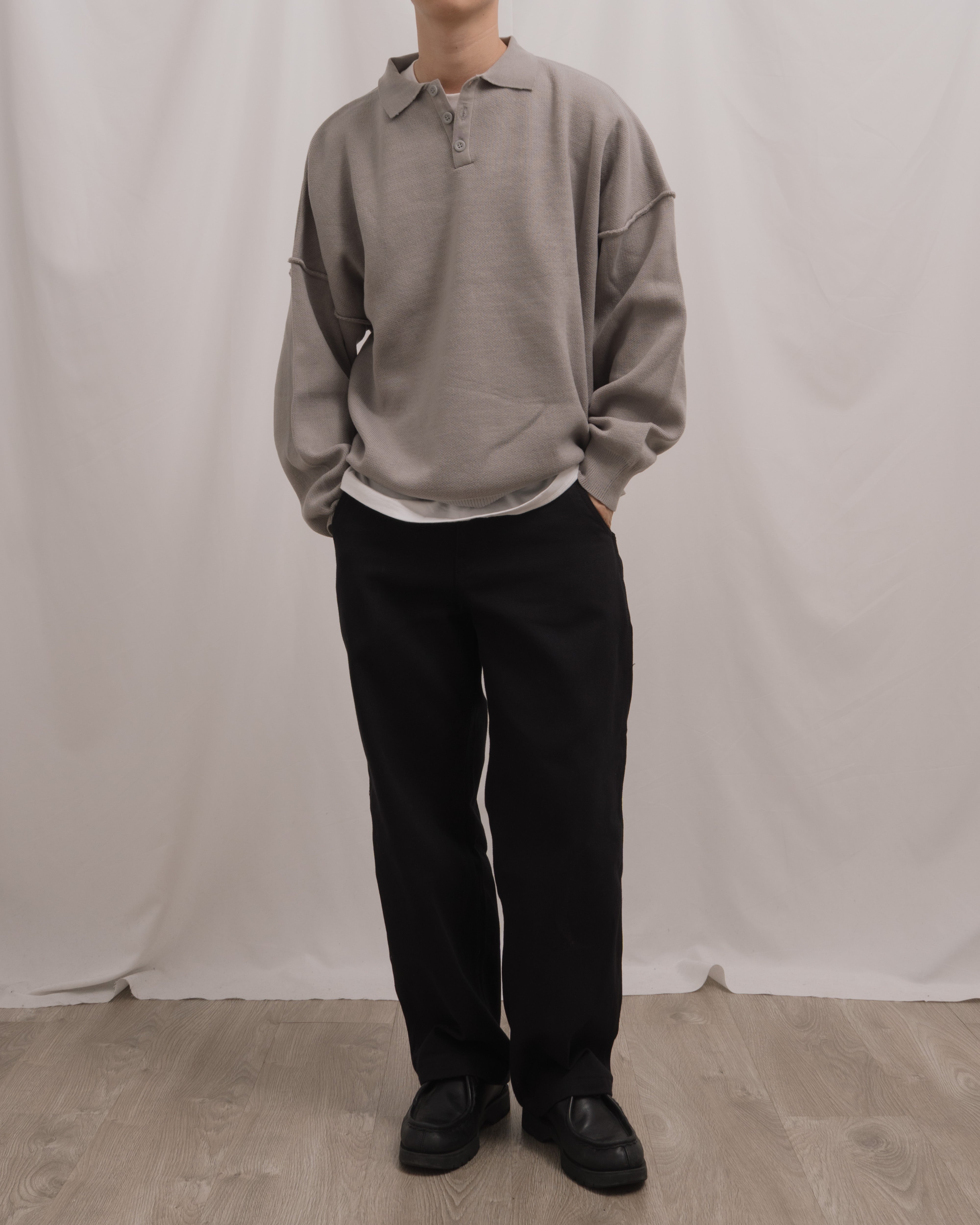 Knit Long Sleeve Polo - Misty